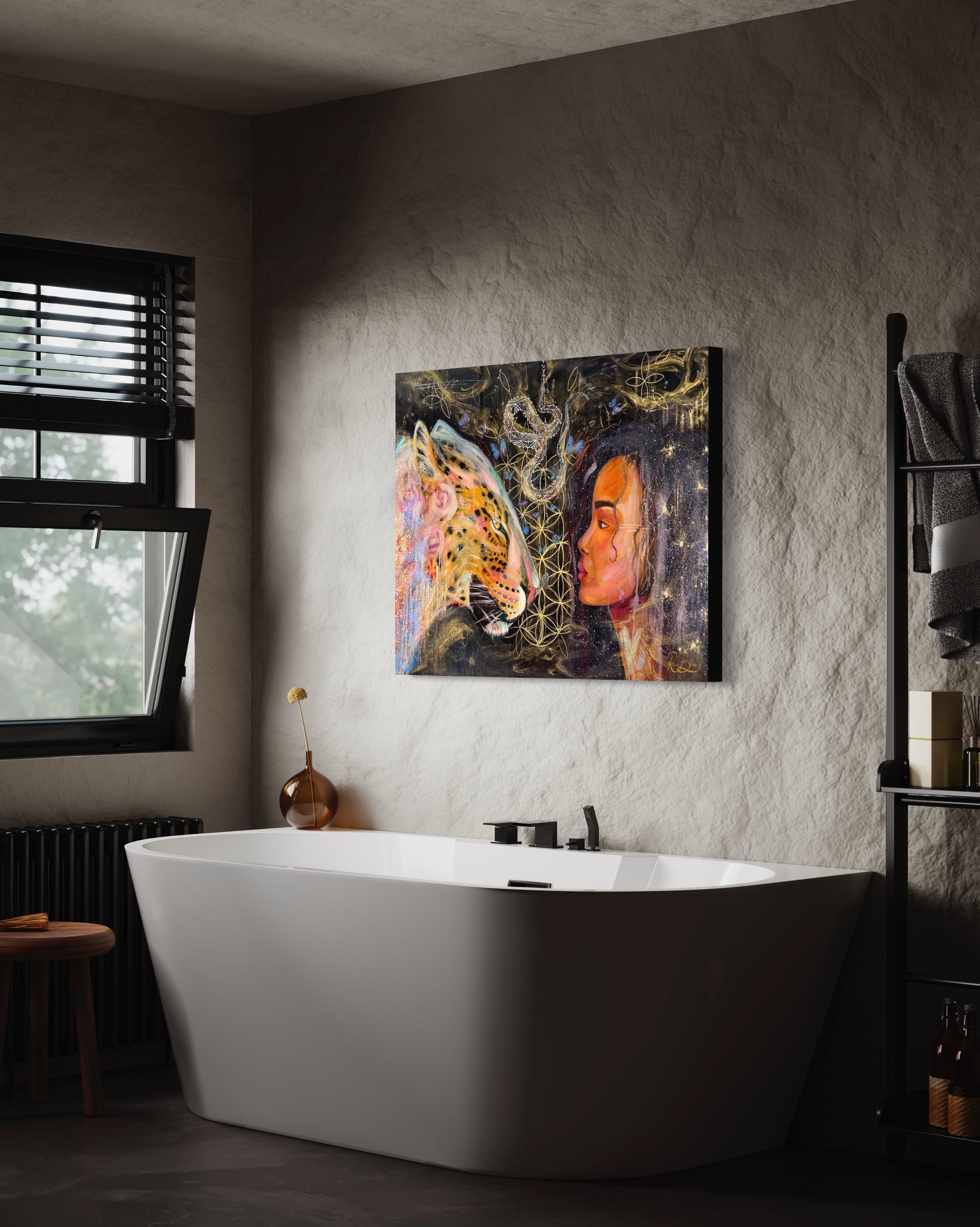 30x40 Original painting on mahogany wood canvas. Sealed with epoxy resin for that shiny and glassy finish. Edges are 2". No need for framing.